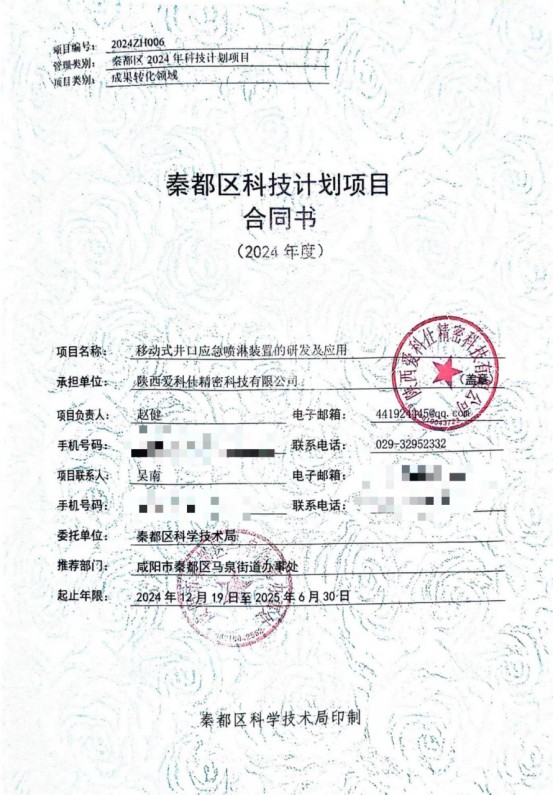 經(jīng)過公司科研團(tuán)隊(duì)的辛勤努力與積極申報(bào),愛科仕公司移動式井口應(yīng)急噴淋裝置的研發(fā)及應(yīng)用成功獲批咸陽市秦都區(qū)2024年科技計(jì)劃項(xiàng)目,并獲得2024年秦都區(qū)科技計(jì)劃項(xiàng)目成果轉(zhuǎn)化類經(jīng)費(fèi)補(bǔ)助...