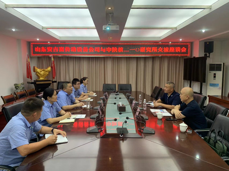 8月8日下午,山東安吉富傳動設備公司與中陜核二一〇研究所召開交流座談會,公司黨委副書記、總經理李偉及相關負責人參加會議。座談會伊始,公司黨委副書記、總經理李偉對山東安吉富傳...