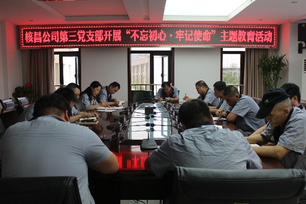 2019年7月8日上午,核昌公司第三黨支部召開“不忘初心、牢記使命”主題教育會,支部委員及全體黨員參加,會議由支部書記羅詩偉主持。會議首先由支部紀(jì)檢委員萬亞軍宣讀了公司“不忘初...