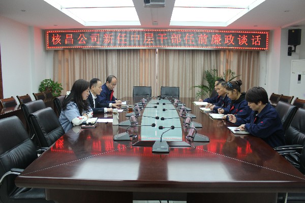 2018年10月9日上午,核昌公司黨委書記、董事長王超宏,紀委書記梁英平,對新任中層干部進行了集體任前談話和廉政談話。會議由黨群工作部部長李榮主持。...