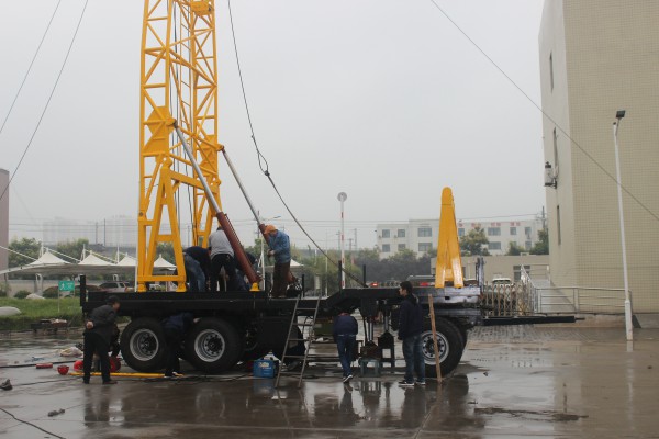 2018年9月25日到26日,核工業208大隊鉆探公司經理褚忠鐸和安防處干事谷峰來我公司驗收5臺HXY-800QT拖車鉆機,并對塔體強度進行拉力實驗測試。首先根據雙方簽訂的技術協議,對5臺HXY-...