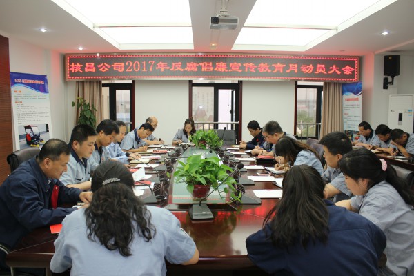 2017年6月5日,為進(jìn)一步提高公司黨員領(lǐng)導(dǎo)干部廉潔自律意識(shí)和拒腐防變能力,繼續(xù)加強(qiáng)公司黨風(fēng)廉政建設(shè)和反腐敗工作,核昌公司在小會(huì)議室召開(kāi) ...