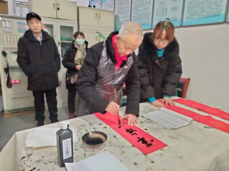 不忘初心,牢記使命,弘揚(yáng)傳統(tǒng)國(guó)粹。 2月4日上午,新春佳節(jié)到來(lái)之際,為了感謝業(yè)主對(duì)二一零物業(yè)公司的理解與支持,納福迎春,喜氣洋洋迎佳節(jié)。物業(yè)公司特邀請(qǐng)國(guó)家一級(jí)書(shū)法家、中國(guó)書(shū)法家協(xié)會(huì)會(huì)員原二一〇工會(huì)主席宋雙全開(kāi)展主題為“書(shū)寫(xiě)春聯(lián)贈(zèng)祝福”的活動(dòng)。