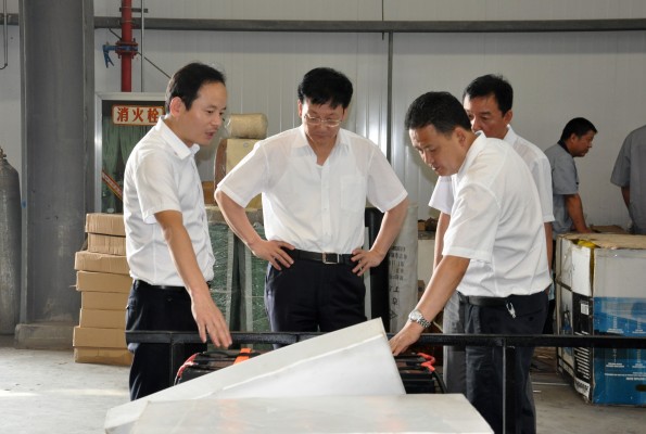 首先,劉副市長一行在王超宏總經理等人的陪同下,參觀了生產車間,雙方就目前的生產情況進行了簡要的交流。隨后的座談中,王超宏總經理介紹了公司的歷史變革、經營狀況及產業構成,并詳細的闡述了公司下一步的發展規劃和發展思路,對目前正在開展的項目做了詳細說明。
