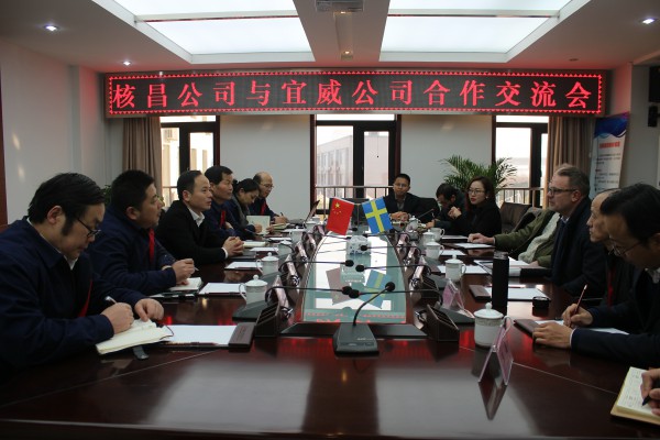2018年1月11日上午,中陜核集團地源熱泵項目組(宜威公司)組長張聯庫與該公司外資方代表朗尼·埃里克森、尤納斯·阿格倫一行9人到我公司考察交流。公司領導班子全體成員陪同。