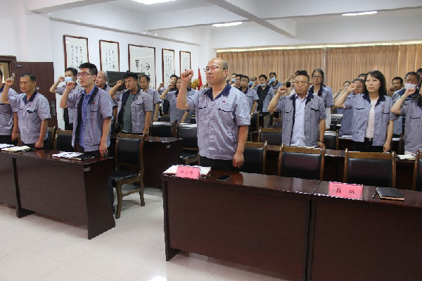 隨后,生產安全部負責人組織大家進行現場管理制度的培訓,要求公司全體員工認真學習,在日常工作中按照制度嚴格執行,并帶領大家學習《核昌公司關于開展2020年“安全生產月”活動的通知》,文件要求活動必須要以“消除事故隱患,筑牢安全防線”主題為指導,深入貫徹執行“安全第一、預防為主、綜合治理”的安全生產方針,抓好公司安全生產工作。接著與會人員一起觀看了《嚴守紅線、生命至上》安全警示片,深刻體會到安全職責的重要性,認識到一定要提高自身安全意識,嚴格杜絕三違操作,消除安全隱患和事故。工會副主席李榮帶領全體參會人員宣讀安全誓詞,要求全體員工從我做起,遵章守紀,認真履責,恪盡職守,勤奮工作,確保公司安全生產。