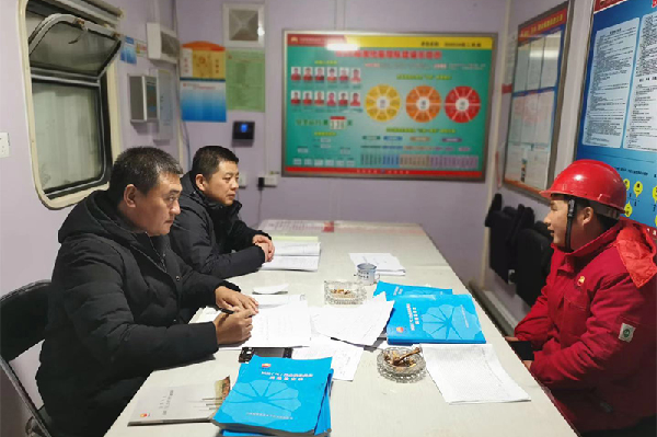 首先,副總經(jīng)理李偉帶領(lǐng)檢查組一行向惡劣環(huán)境下仍堅持在野外作業(yè)的全體員工表示致敬和親切慰問,并為大家送上了慰問品,細致詢問工作人員的生活及身體狀況,提醒駐場工作人員要做好防寒保暖、注意安全、嚴防安全事故的發(fā)生。