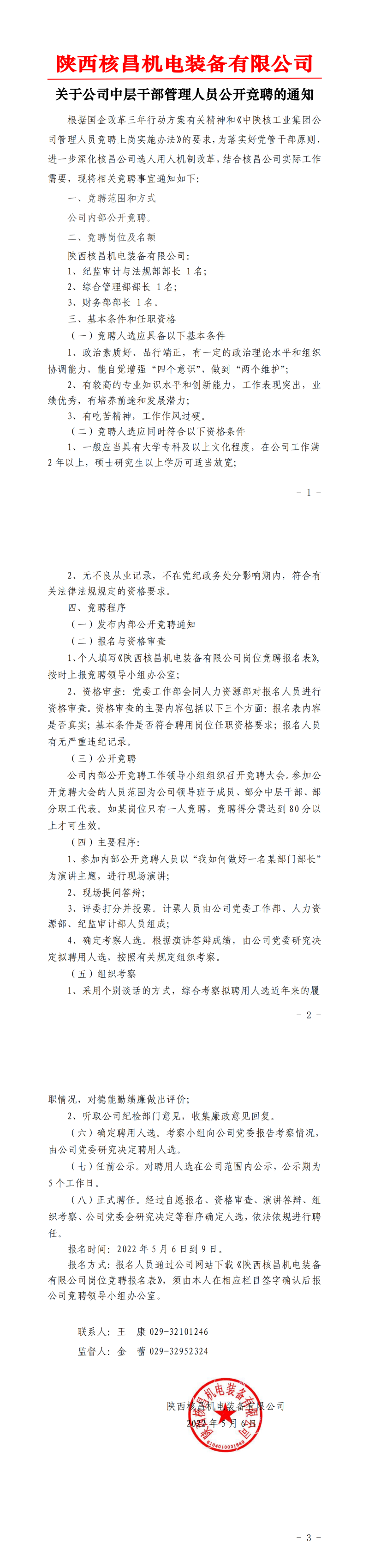 陜西核昌機電裝備有限公司內(nèi)部公開競聘報名表